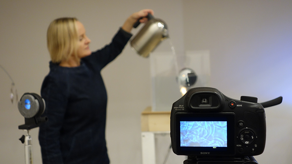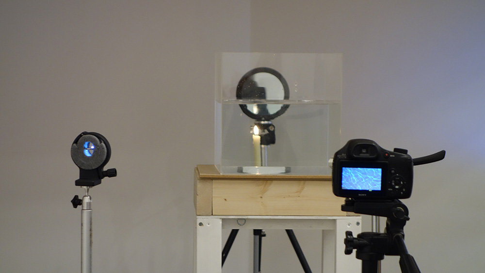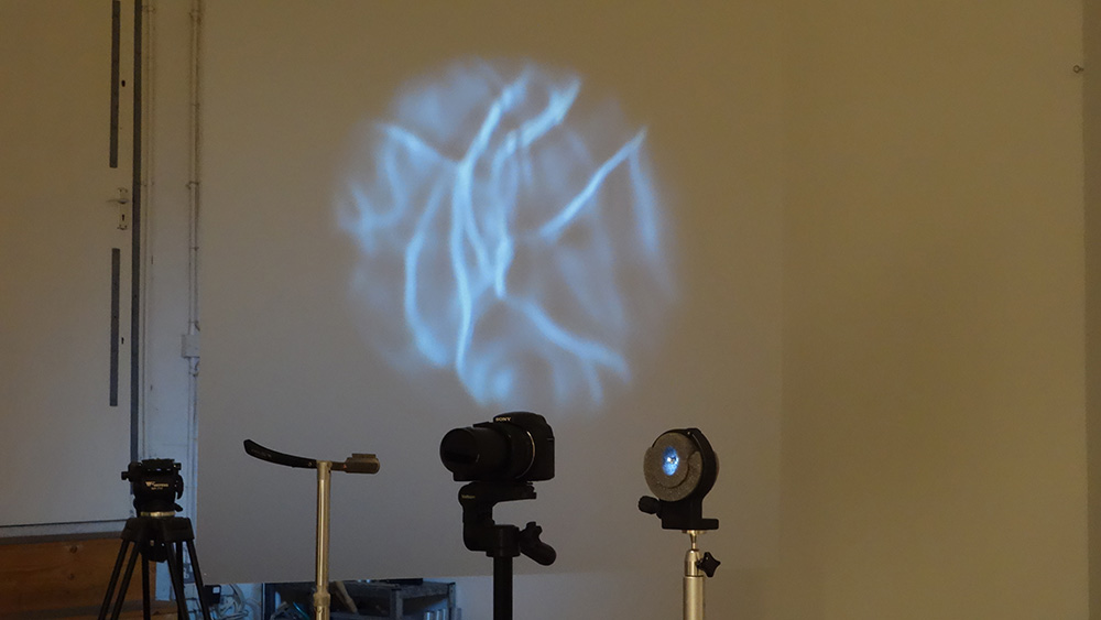 Schlieren Waves Live experiments with visualising invisible currents in transparent media and investigates the liminal thresholds between the seen and unseen. The Schlieren phenomenon was first observed by Robert Hooke in 1665 using a large concave mirror and two candles.