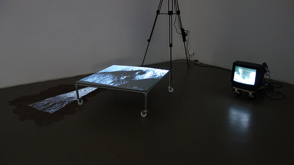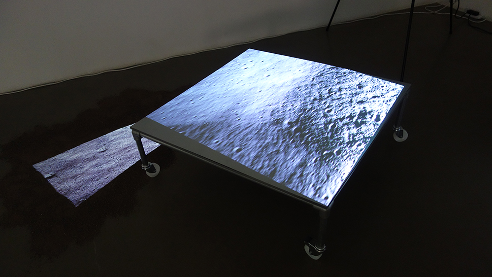 In 1972, the Apollo 17 mission to the Moon included the first scientist-astronaut, Harrison Schmitt, with a PhD in Geology. The installation will include original footage of Schmitt's regolith discoveries in the volcanic Taurus-Littrow Valley, contrasted with footage from recent LROC lunar flyovers projected onto ground basalt.