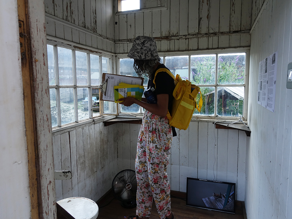 Above and below: Welcoming visitors to APT ART YARD on 17th - 18th July. This was a Deptford X Fringe event and part of the Deptford X Festival. A film of the Egyptian Geese family visiting the raft played on a screen in APT's Tea Hut, and documentation about the flora and birds recorded in Deptford Creek: Surviving Regeneration (Steele, 1999) were placed on the walls.