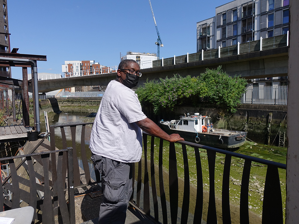 The call of the Black Redstart that used to nest in Deptford Creek could be be heard near the raft. After a recent possible sighting, it was hoped that others may join. The Black Redstart is a nationally rare bird protected under Schedule 1 of the Wildlife and Countryside Act 1981. Before regeneration started during the mid 1990s, 7% of their population used to be found along Deptford Creek. In June-July 1997 a Black Redstart exhibiting breeding behaviour stopped all building work at Fairview Homes where Deptford Creek joins the Thames. Encouraging nesting Black Redstarts could be interpreted as a strategy of resistance to excessive regeneration near Deptford Creek, as new blocks start to tower over the last open skyline view from APT Yard to the west.