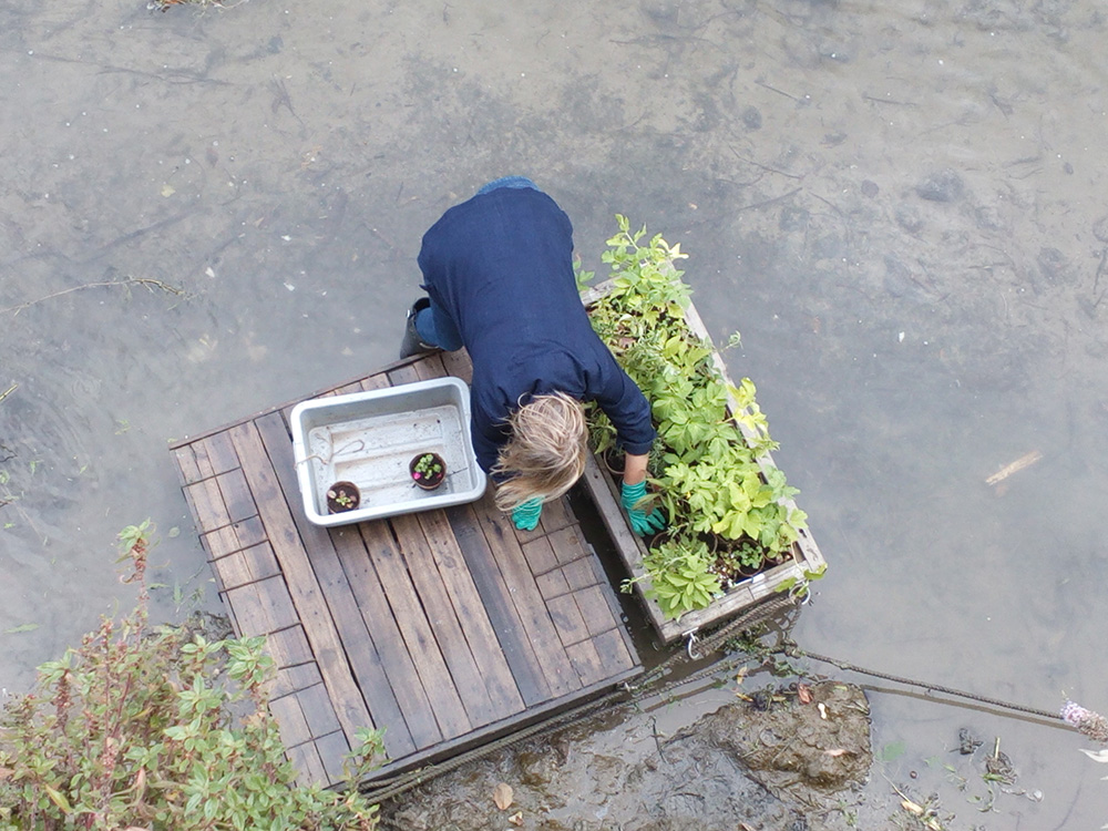 Below: Re-planting the raft, which is staying for a few months and will adapt to and record changing wildfowl interactions and events.